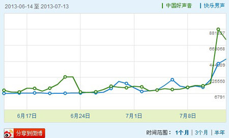 中國好聲音和快樂男聲微指數(shù)數(shù)據(jù)比較