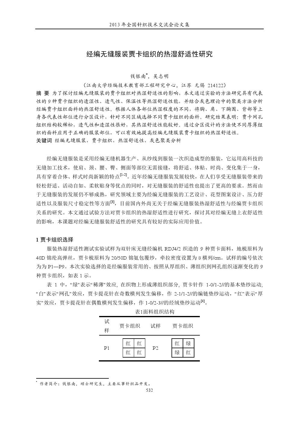 經編無縫服裝賈卡組織的熱濕舒適性研究