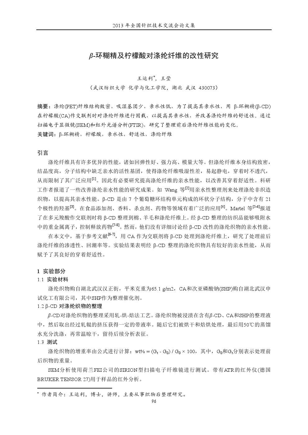 β-環(huán)糊精及檸檬酸對滌綸纖維的改性研究