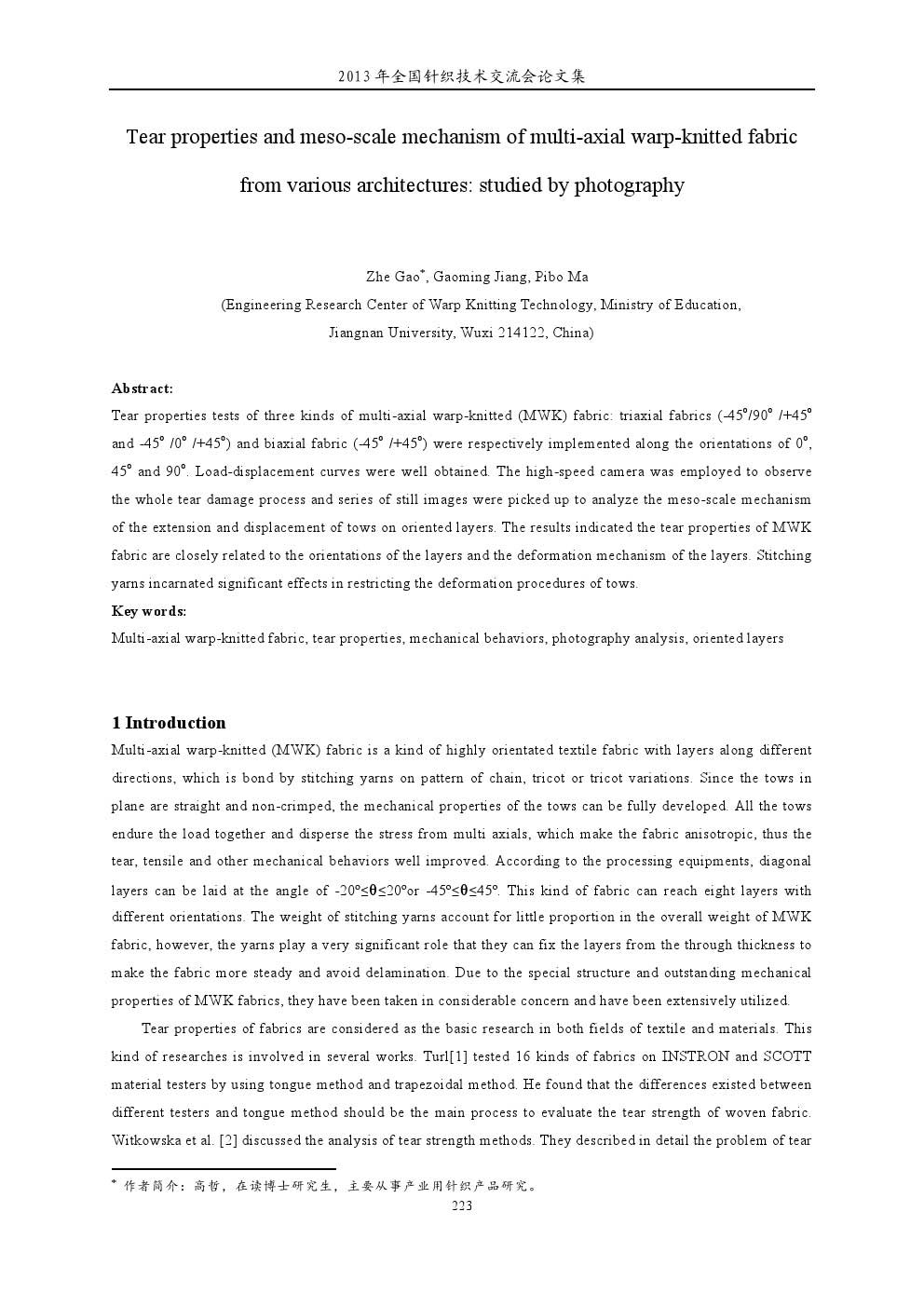 Tear properties and meso-scale mechanism of multi-axial warp-knitted fabric