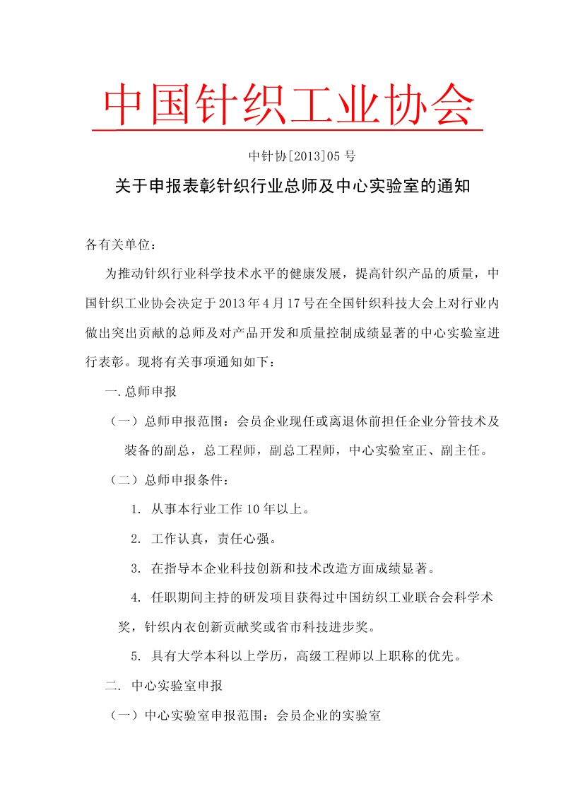 點(diǎn)擊下載:【申報(bào)表彰針織行業(yè)總師及中心實(shí)驗(yàn)室的通知】