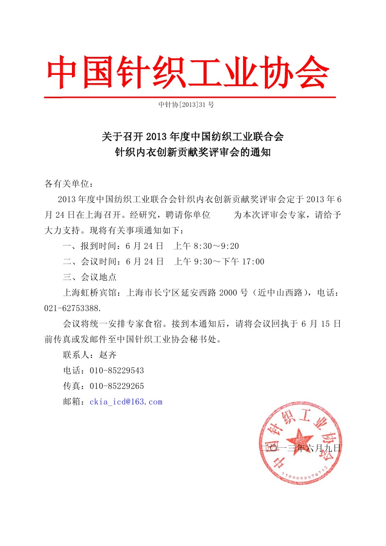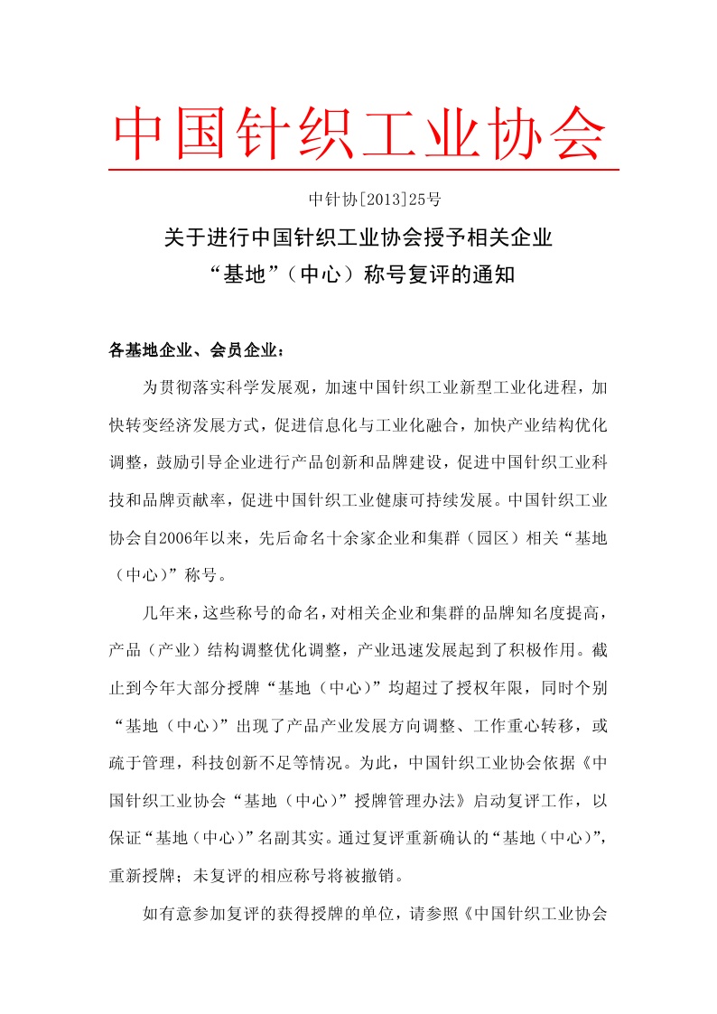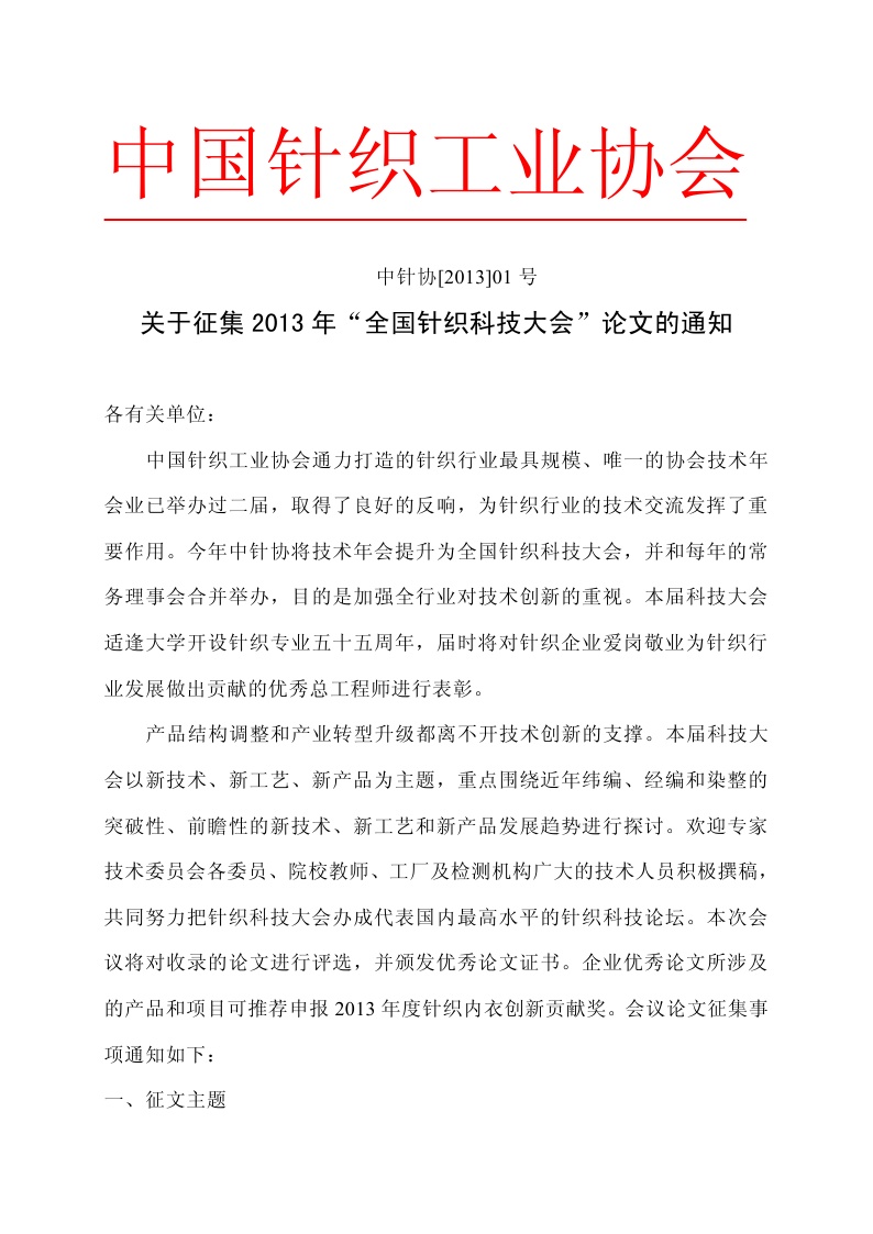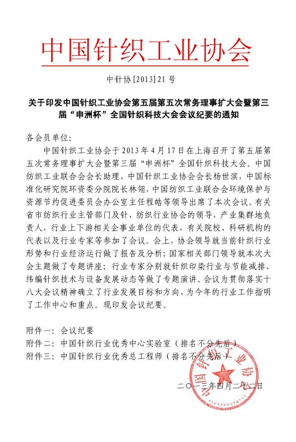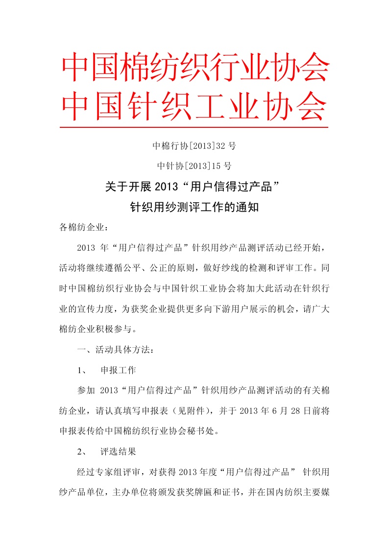 點(diǎn)擊下載:【召開2013年第二屆中國(guó)針織產(chǎn)業(yè)集群年會(huì)的通知】點(diǎn)擊下載:【開展2013用戶信得過(guò)產(chǎn)品針織用紗測(cè)評(píng)工作的通知】