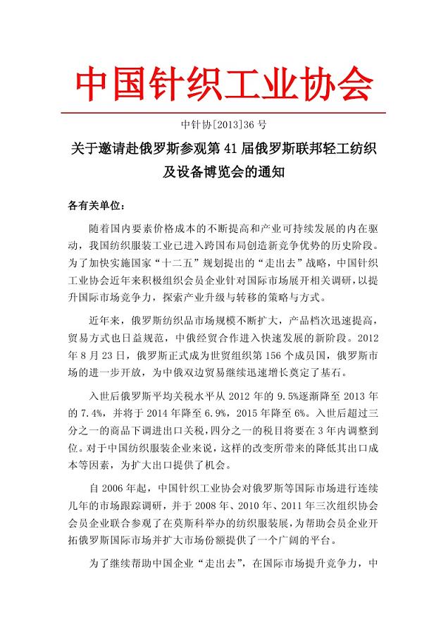 點(diǎn)擊下載:【參觀第41屆俄羅斯聯(lián)邦輕工紡織及設(shè)備博覽會(huì)的通知】