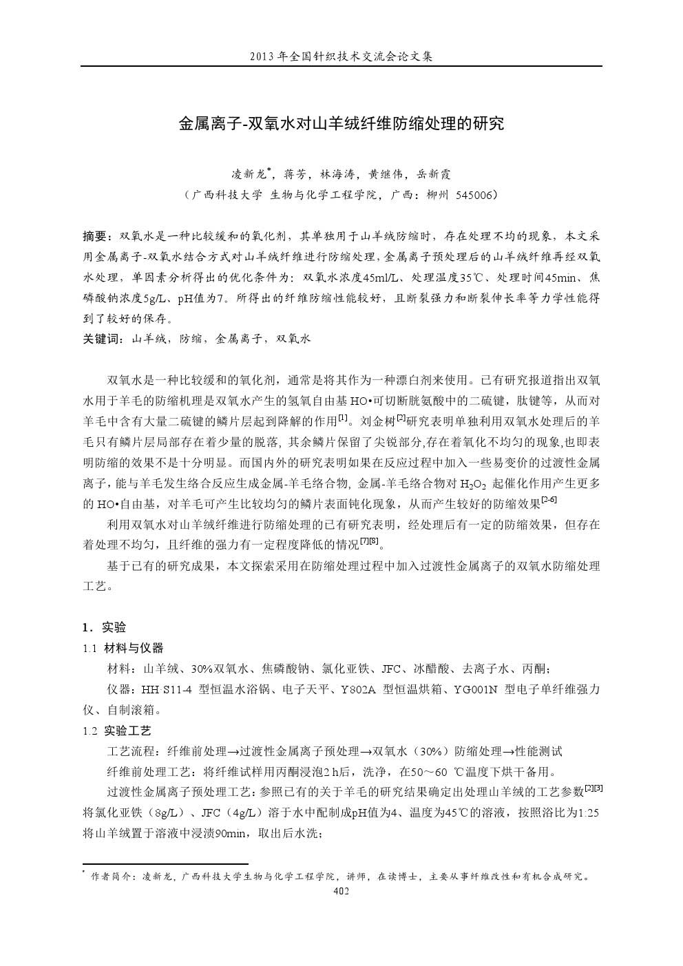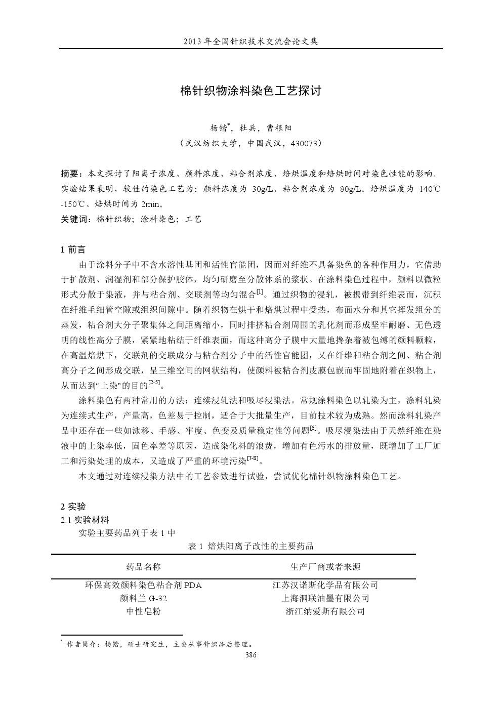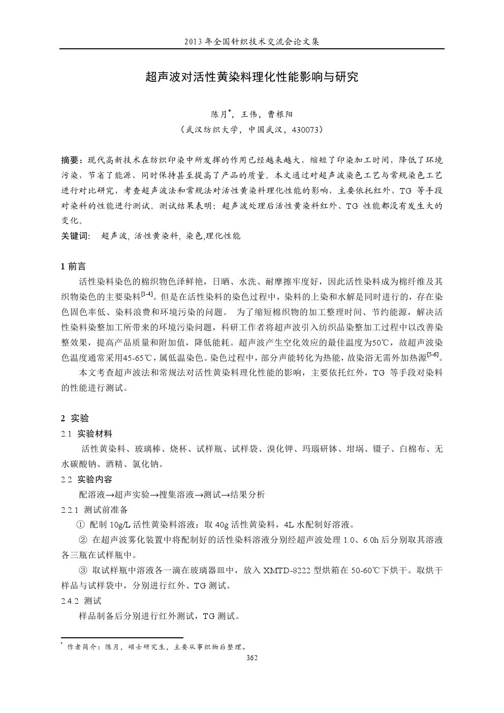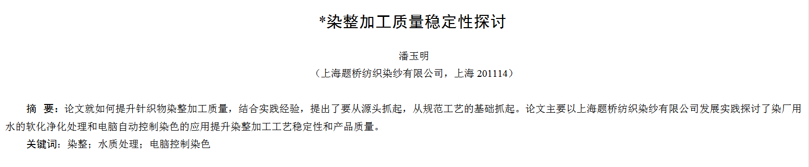 梁偉超 鄭健寧(新會冠華針織廠有限公司,廣東 江門 529157 ) 摘 要:以20S/1棉精梳平紋上染TCN活性染料——染深寶藍色為例,分析了新一代的MEKIFAST TCN活性染料的染色工藝,并通過對比試驗確定較佳的染色工藝參數(shù):浴比1:8,染色溫度80℃,染色時間60min...