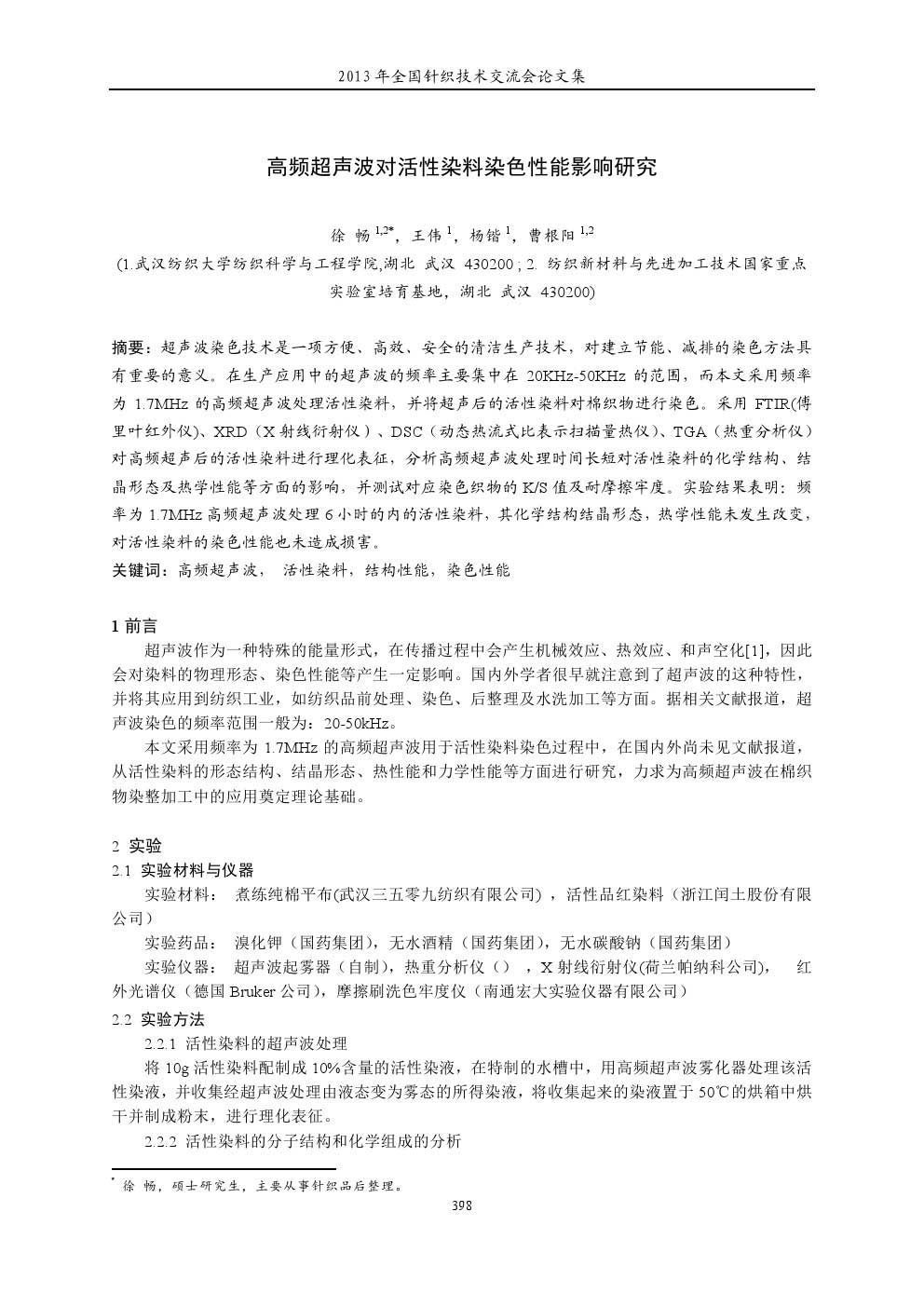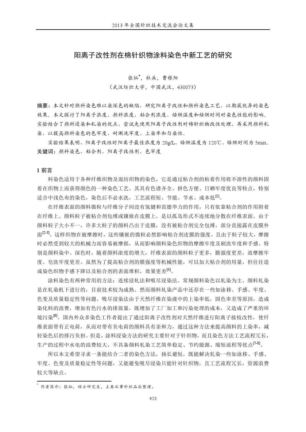 王江波 羅敏亞 (常州旭榮針織印染有限公司,江蘇 常州 213017) 摘 要:采用陽離子改性劑T對棉織物進行了陽離子改性處理,然后用酸性染料對其染色。結果表明酸性染料能很好的上染改性纖維素,并有很好的水洗牢度。對常見的六纖沾色很好,在染整廠有很大...